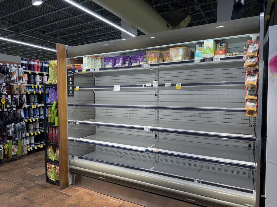 This photo taken on Jan. 14, 2025 shows an empty egg shelf at a supermarket in Arlington, the United States. (Xinhua/Xiong Maoling)