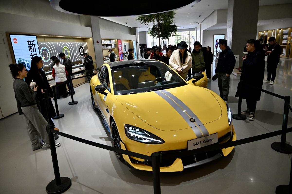 A Xiaomi SU7 Ultra is presented in Mixc Mall in Chengdu, Sichuan province, on Feb 28. (Zhang Lang/China News Service)