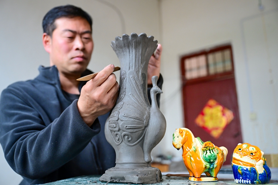 In recent years, the local government has promoted a development model that integrates tri-colored glazed pottery wares of the Tang Dynasty with cultural tourism and creative industries, boosting local employment and driving nationwide sales of the cultural products.