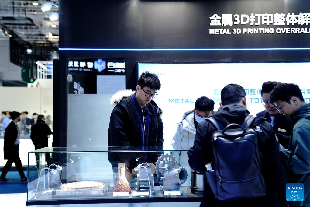 A 3D-printed exhibit is seen at TCT Asia 2025 at the National Exhibition and Convention Center (Shanghai) in Shanghai, east China, March 17, 2025. TCT Asia 2025, a three-day event featuring industrial 3D printing and additive manufacturing, kicked off here on Monday. (Xinhua/Zhang Jiansong)