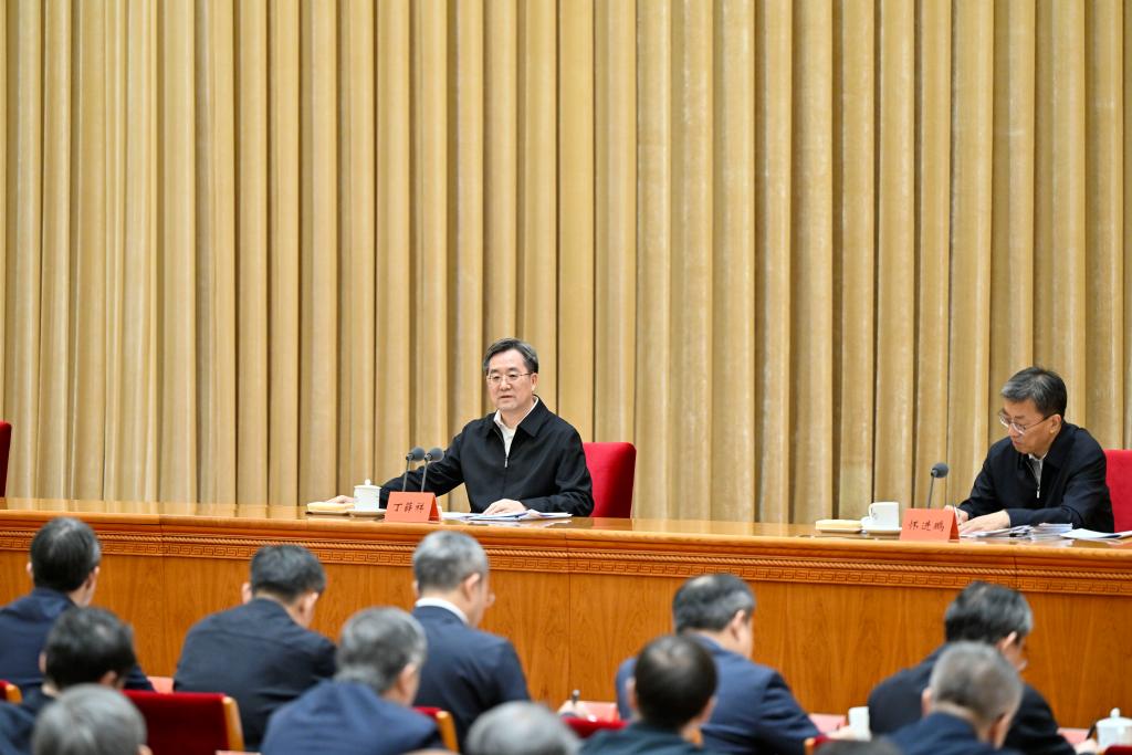 Chinese Vice Premier Ding Xuexiang, also a member of the Standing Committee of the Political Bureau of the Communist Party of China Central Committee, makes a speech at a meeting in Beijing, capital of China, March 17, 2025. Ding called for a systemic leap from scale to quality in the field of higher education, with the aim of establishing a strategic, pioneering force for Chinese modernization. (Xinhua/Yin Bogu)