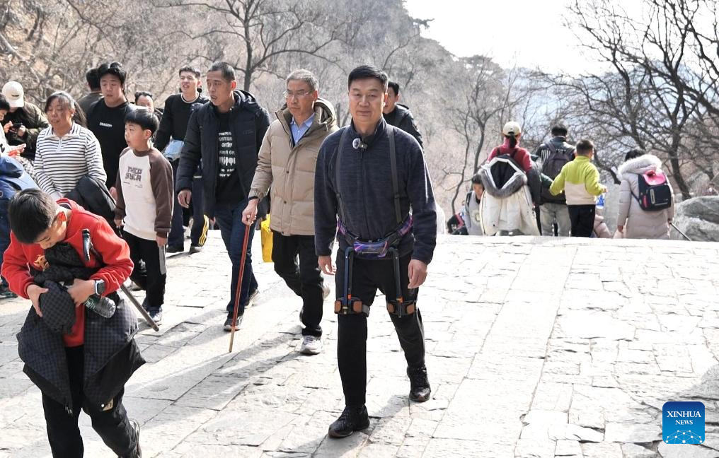 During this year's Spring Festival, Mount Tai in east China's Shandong Province, one of the most iconic mountains in the country, introduced an innovative exoskeleton robot.