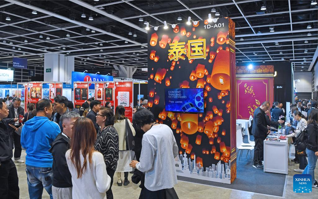 This photo taken on March 17, 2025 shows the exhibition area of Thailand at the Hong Kong International Film and TV Market (FILMART), in Hong Kong, south China. The 29th Hong Kong FILMART opened on Monday, kicking off a four-day bonanza attended by over 760 exhibitors from 34 countries and regions. (Xinhua/Chen Duo)