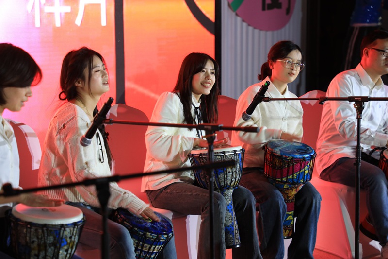 Young people perform African drums during a performance held in Guanshanhu district, Guiyang city, southwest China's Guizhou Province. (Photo courtesy of the Publicity Department of the Communist Party of China Guanshanhu District Committee)