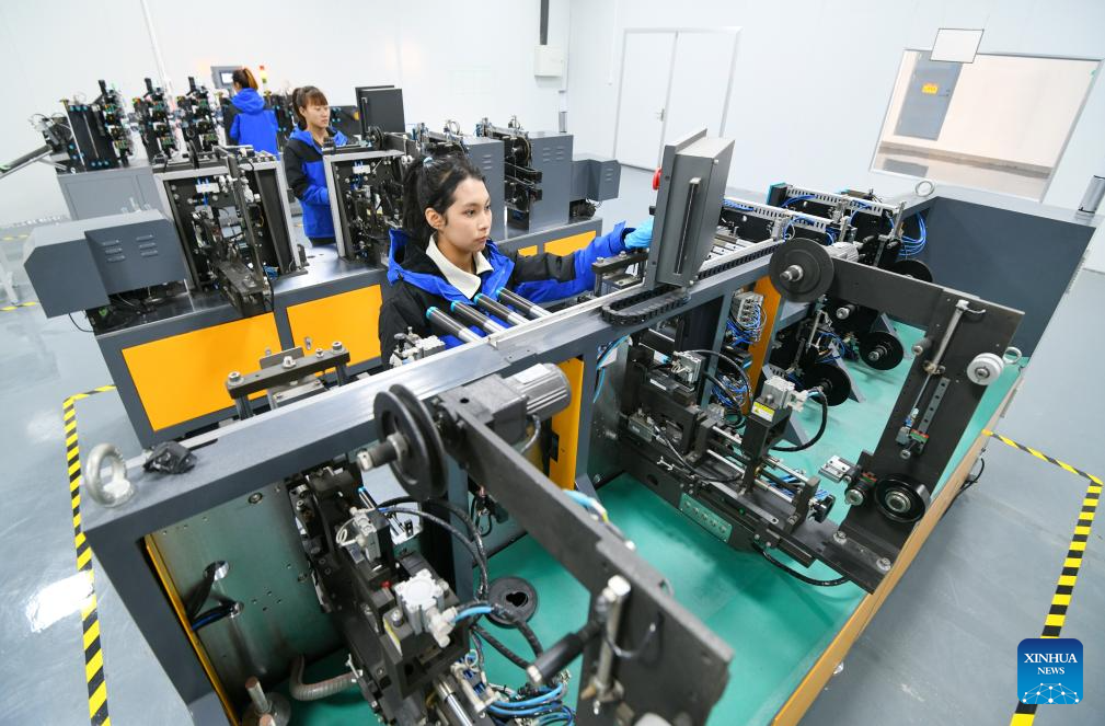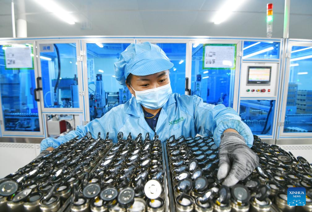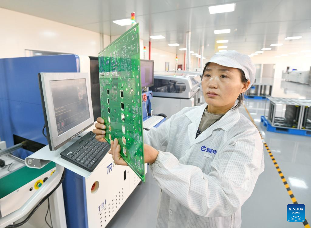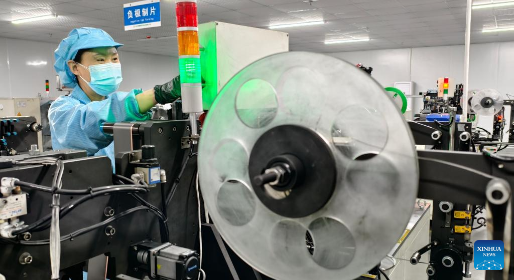 A staff member works at a workshop of a new energy company in Qingyun County of Dezhou, east China's Shandong Province, March 17, 2025. In recent years, Qingyun County has leveraged its advantages in green electricity resources to build the Zhongqing New Energy Green Near-Zero Carbon Industrial Park, which has attracted and nurtured dozens of new energy industry projects. (Xinhua/Fan Changguo)