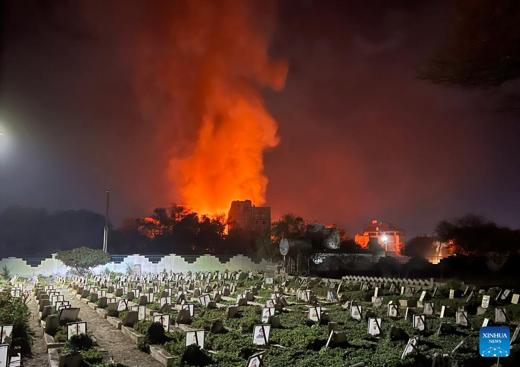 SANAA, March 19 (Xinhua) -- A new round of U.S. airstrikes struck Yemen's capital Sanaa on Wednesday evening, wounding at least nine people, including seven women and two children, according to Houthi-run al-Masirah TV.