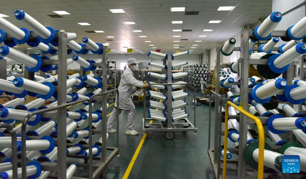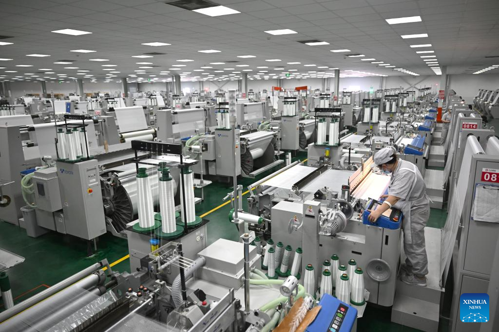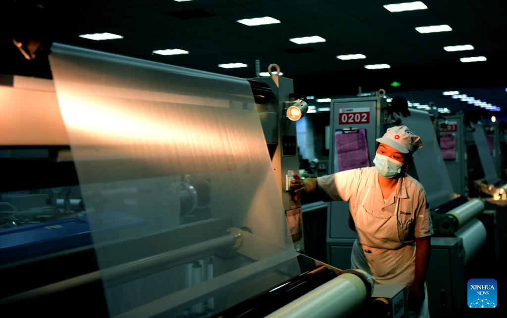 A staff member works at a new material firm in the Hongqi Canal Economic and Technological Development Zone of Linzhou City, central China's Henan Province, March 19, 2025. (Xinhua/Zhu Xiang)