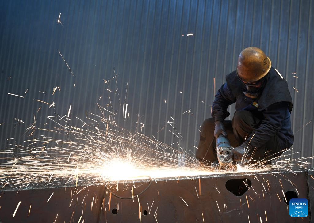 A staff member works at a workshop of Linzhou Heavy Machinery Group Co., Ltd. in the Hongqi Canal Economic and Technological Development Zone of Linzhou City, central China's Henan Province, March 19, 2025. (Xinhua/Fan Yuqing)