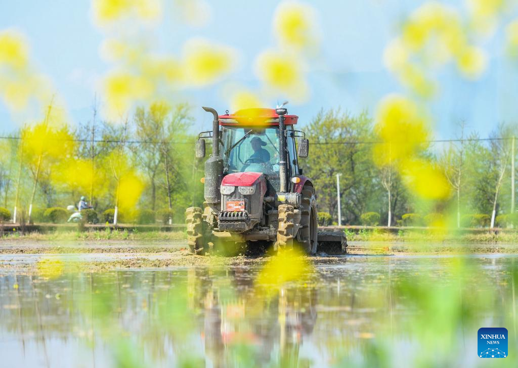 A farmer driving a farm machine plows a field in Shijia Village, Yongzhou City of central China's Hunan Province, March 18, 2025. With the approaching of spring equinox, or Chunfen in Chinese, the fourth solar term in the Chinese lunar calendar which will fall on March 20 this year, farmers across the country are busy working at fields. (Photo by Jiang Keqing/Xinhua)