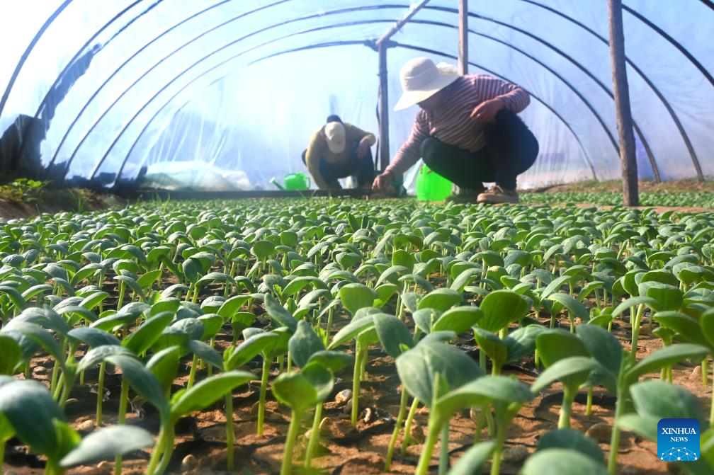 Farmers cultivate watermelon seedlings in Beixinzhuang Village, Kaifeng City of central China's Henan Province, March 18, 2025. With the approaching of spring equinox, or Chunfen in Chinese, the fourth solar term in the Chinese lunar calendar which will fall on March 20 this year, farmers across the country are busy working at fields. (Photo by Li Junsheng/Xinhua)