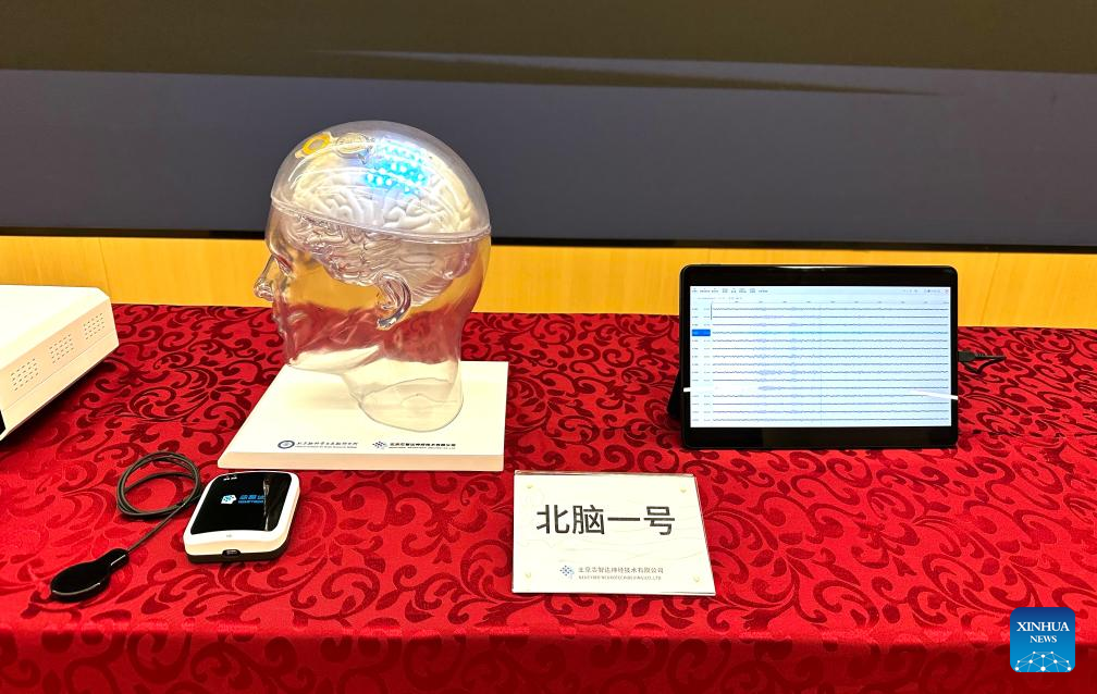 This photo shows a semi-invasive brain-machine interface (BMI) at a press conference held by the Chinese Institute for Brain Research, Beijing (CIBR) and NeuCyber NeuroTech (Beijing) Co., Ltd. in Beijing, capital of China, March 20, 2025. (Xinhua/Zhang Manzi)
