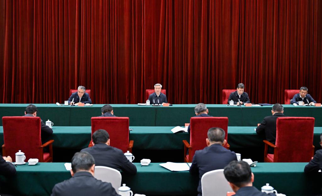 Li Xi, a member of the Standing Committee of the Political Bureau of the Communist Party of China (CPC) Central Committee and secretary of the CPC Central Commission for Discipline Inspection, presides over a symposium in Nanchang, east China's Jiangxi Province, March 20, 2025. Li made an inspection tour of Jiangxi Province from Monday to Thursday. (Xinhua/Yue Yuewei)
