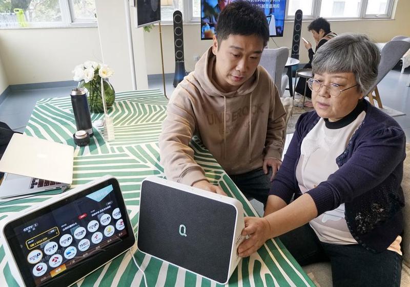 A staff member of an elderly care service center guides a senior citizen on using smart devices in Dongcheng district in Beijing, capital of China, Oct 31, 2024. (Photo/Xinhua)