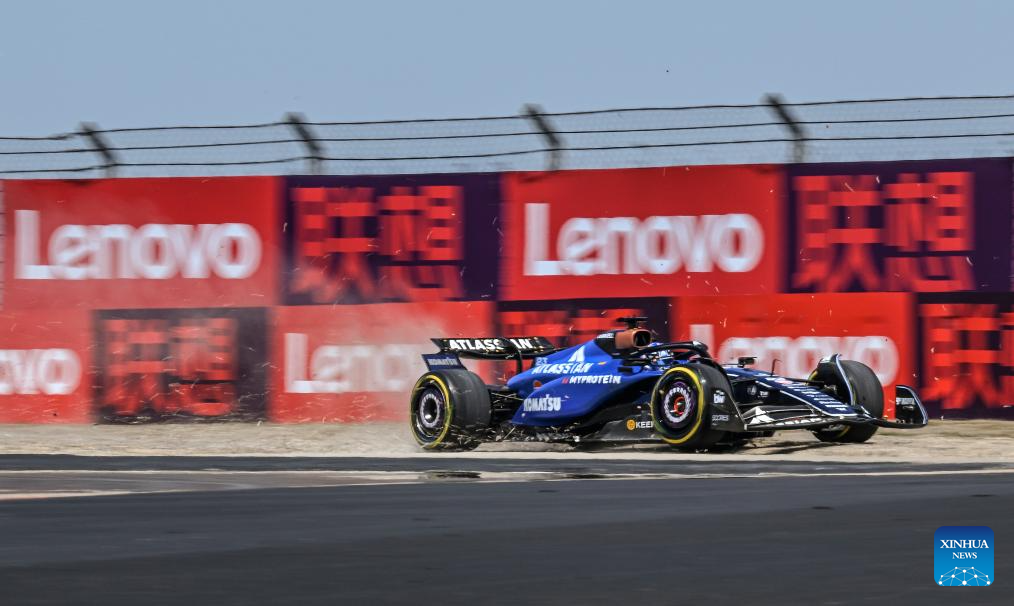 Williams' driver Alexander Albon of Thailand loses control during the first practice session of the Formula 1 Chinese Grand Prix at the Shanghai International Circuit in east China's Shanghai, on March 21, 2025. (Xinhua/Xia Yifang)
