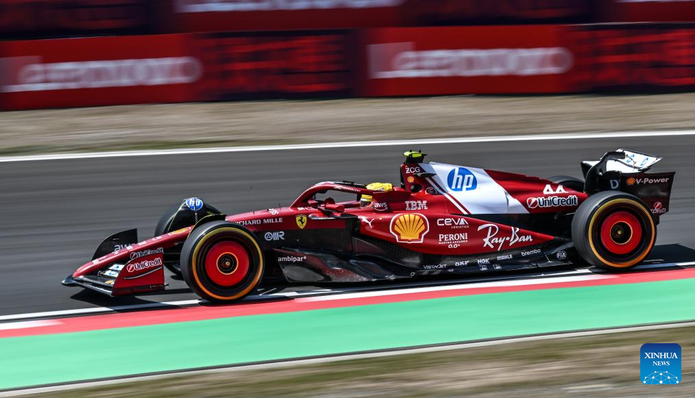 Ferrari's driver Lewis Hamilton of Britain competes during the first practice session of the Formula 1 Chinese Grand Prix at the Shanghai International Circuit in east China's Shanghai, on March 21, 2025. (Xinhua/Xia Yifang)