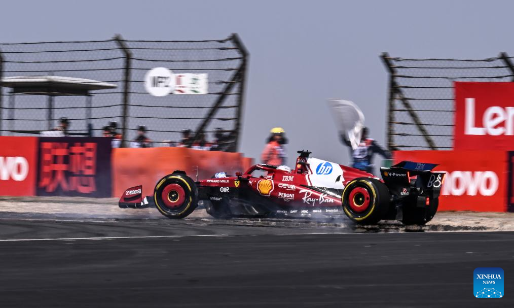 Ferrari's driver Charles Leclerc of Monaco loses control during the first practice session of the Formula 1 Chinese Grand Prix at the Shanghai International Circuit in east China's Shanghai, on March 21, 2025. (Xinhua/Xia Yifang)