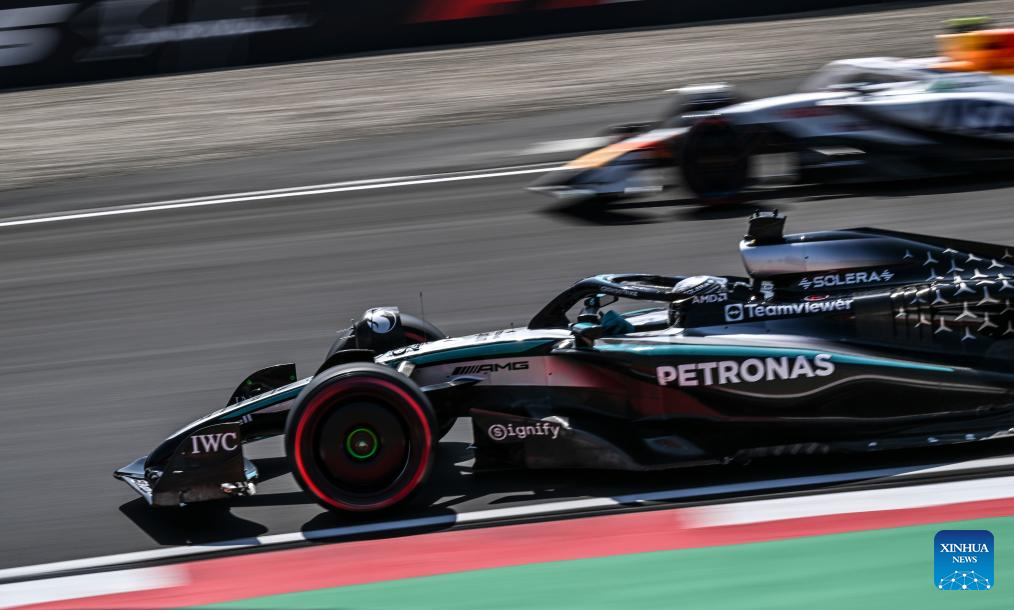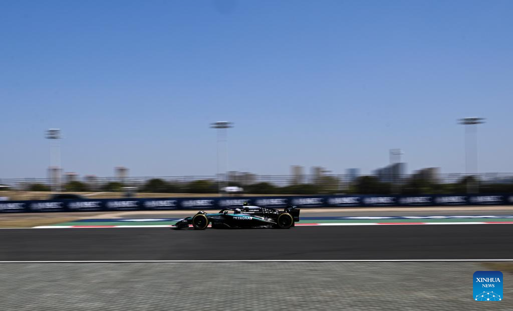 Mercedes's driver George Russell of Britain competes during the first practice session of the Formula 1 Chinese Grand Prix at the Shanghai International Circuit in east China's Shanghai, on March 21, 2025. (Xinhua/Xia Yifang)