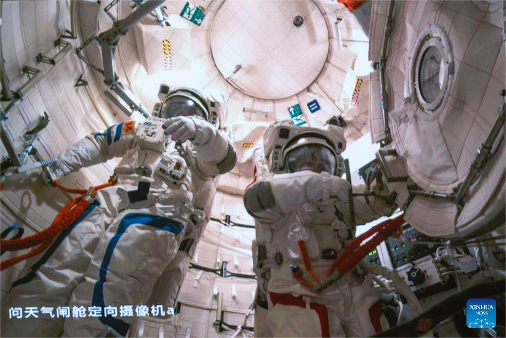 Astronauts Cai Xuzhe, Song Lingdong and Wang Haoze worked for about seven hours to complete multiple tasks, including the installation of space debris protection devices and extravehicular auxiliary facilities, as well as extravehicular equipment inspection. They were assisted by the space station's robotic arm and a team on Earth.