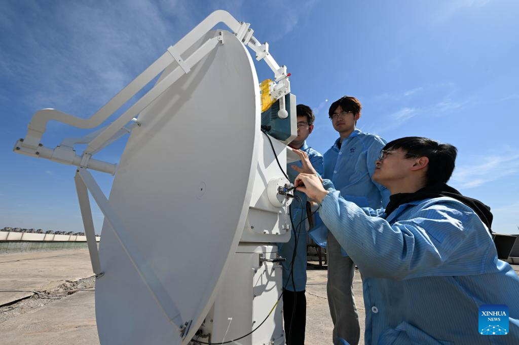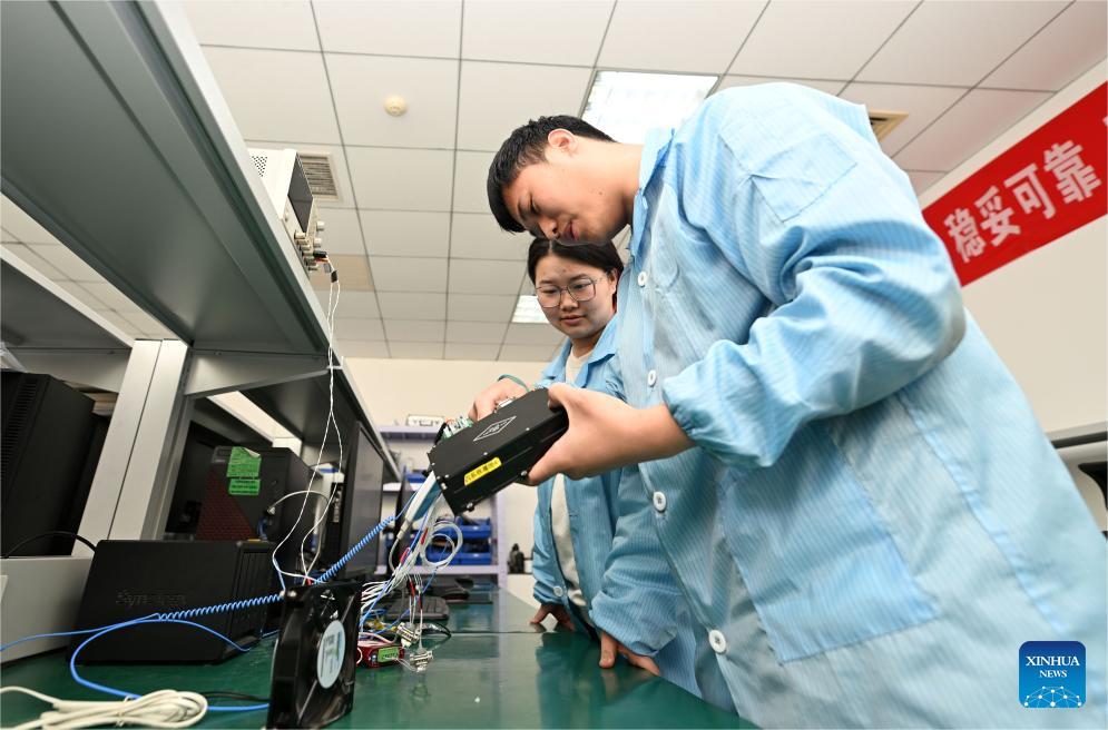 Staff members test a climate radar device at the Tianjin Yunyao Aerospace Technology Co., Ltd. in Tianjin, north China, March 21, 2025. In recent years, Binhai New Area in north China's Tianjin has optimized the business environment for private economy to accelerate its development. In 2024, the Economy Value Added of private economy in the area has increased by 9.1 percent year-on-year. (Xinhua/Zhao Zishuo)