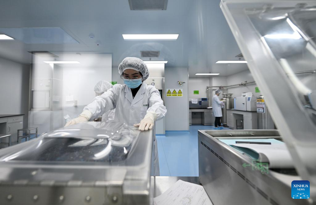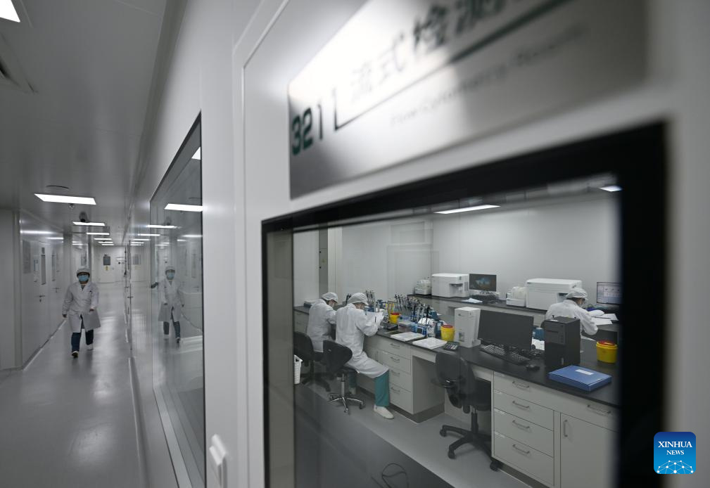 Staff members do tests at a production base of Juventas Cell Therapy Ltd. in Tianjin, north China, March 21, 2025. In recent years, Binhai New Area in north China's Tianjin has optimized the business environment for private economy to accelerate its development. In 2024, the Economy Value Added of private economy in the area has increased by 9.1 percent year-on-year. (Xinhua/Zhao Zishuo)