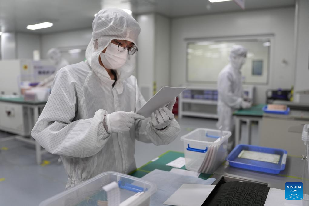 People work at an intelligent workshop of Konfoong Materials International Co., Ltd. in Yuyao, east China's Zhejiang Province, March 20, 2025. In recent years, Yuyao has been continuously strengthening the introduction and cultivation of integrated circuit enterprises and optimizing industrial layout. In 2024, the added value of the city's integrated circuit industry reached 3.048 billion yuan (about 420.5 million U.S. dollars), marking a year-on-year growth of 47.5 percent. (Xinhua/Huang Zongzhi)
