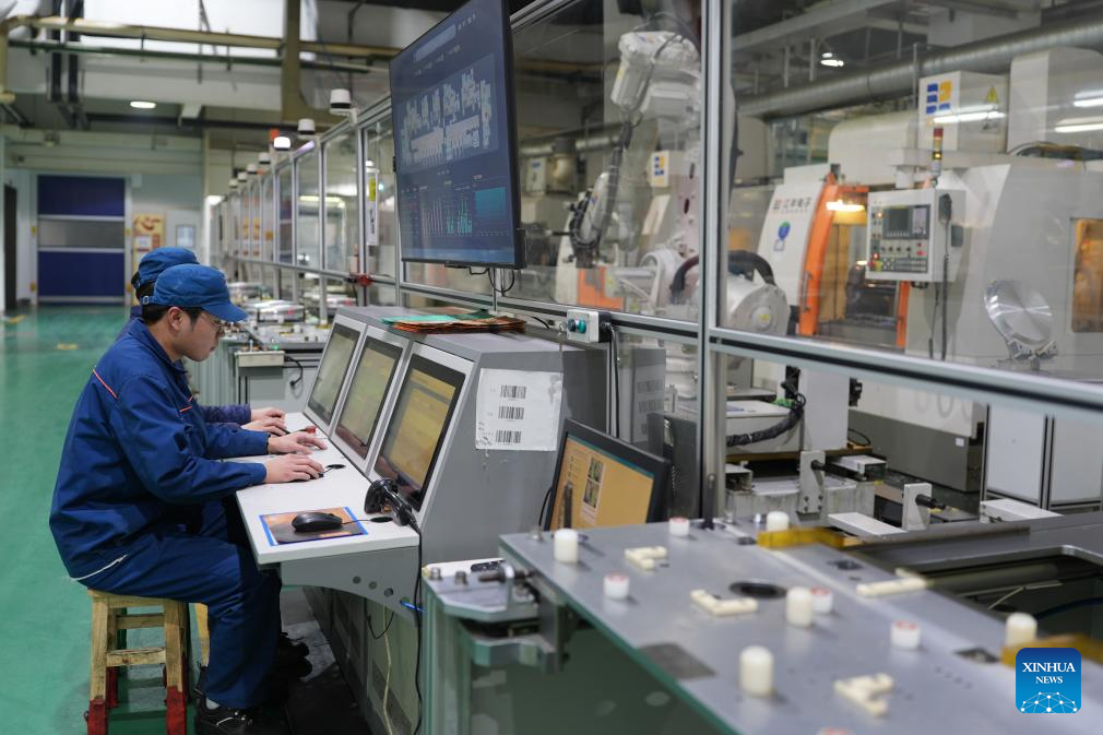 A technician works at an intelligent workshop of Konfoong Materials International Co., Ltd. in Yuyao, east China's Zhejiang Province, March 20, 2025. In recent years, Yuyao has been continuously strengthening the introduction and cultivation of integrated circuit enterprises and optimizing industrial layout. In 2024, the added value of the city's integrated circuit industry reached 3.048 billion yuan (about 420.5 million U.S. dollars), marking a year-on-year growth of 47.5 percent. (Xinhua/Huang Zongzhi)