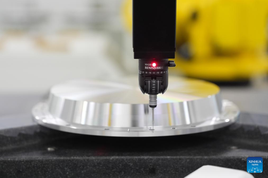 This photo taken on March 20, 2025 shows a device at an intelligent workshop of Konfoong Materials International Co., Ltd. in Yuyao, east China's Zhejiang Province. In recent years, Yuyao has been continuously strengthening the introduction and cultivation of integrated circuit enterprises and optimizing industrial layout. In 2024, the added value of the city's integrated circuit industry reached 3.048 billion yuan (about 420.5 million U.S. dollars), marking a year-on-year growth of 47.5 percent. (Xinhua/Huang Zongzhi)