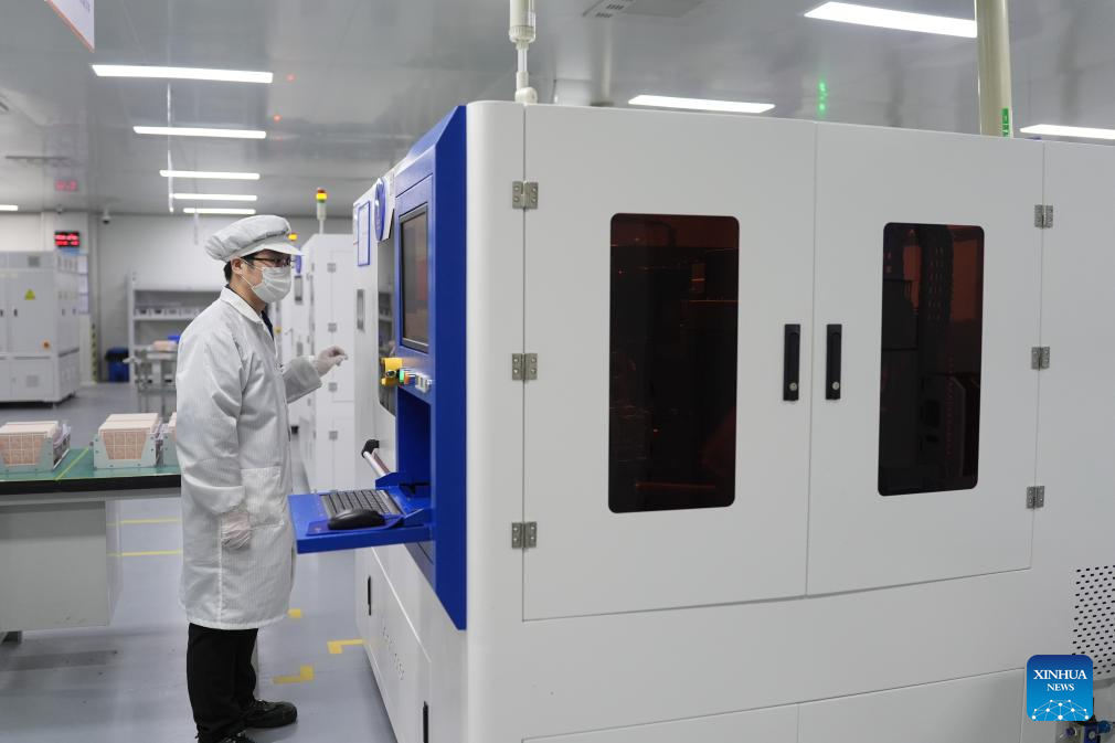 A technician works at an intelligent workshop of Konfoong Tongxin Semiconductor Material Co., Ltd. in Yuyao, east China's Zhejiang Province, March 20, 2025. In recent years, Yuyao has been continuously strengthening the introduction and cultivation of integrated circuit enterprises and optimizing industrial layout. In 2024, the added value of the city's integrated circuit industry reached 3.048 billion yuan (about 420.5 million U.S. dollars), marking a year-on-year growth of 47.5 percent. (Xinhua/Huang Zongzhi)