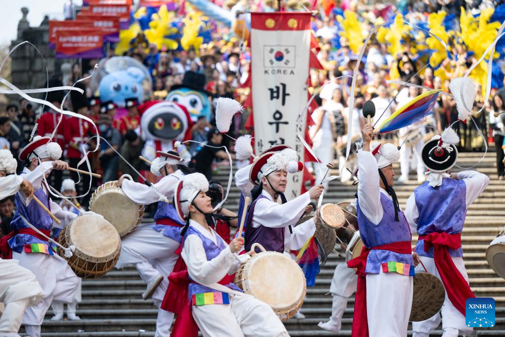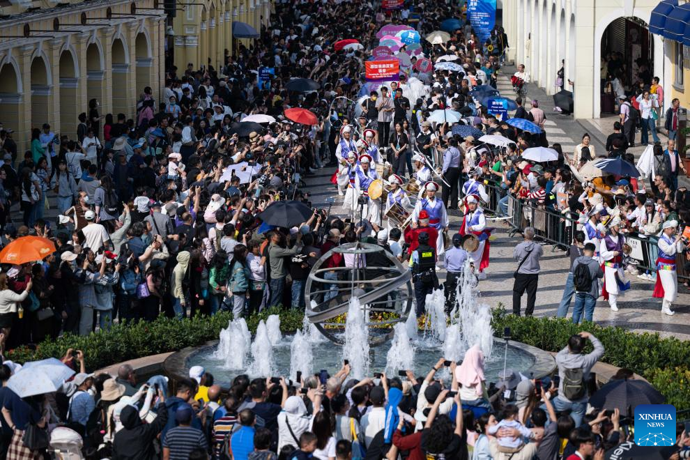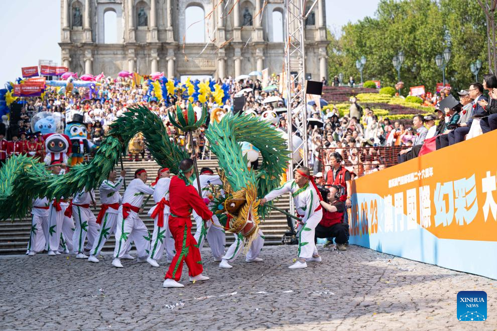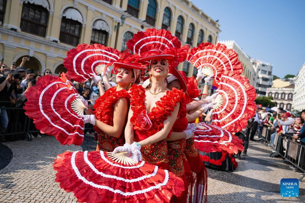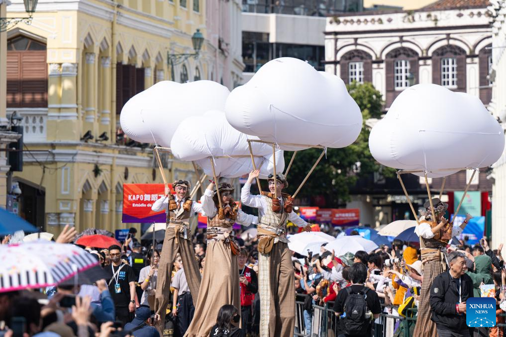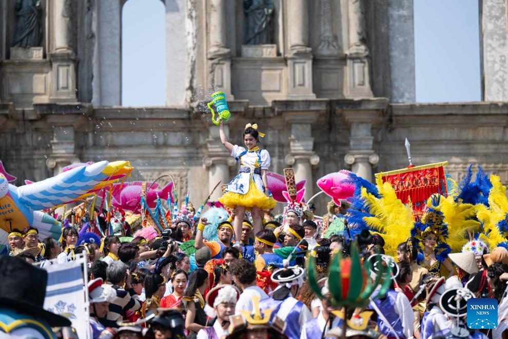 People participate in the 2025 Macao International Parade in Macao, south China, March 23, 2025. The 2025 Macao International Parade celebrating the 26th anniversary of Macao's Return to the Motherland was held on Sunday. (Xinhua/Cheong Kam Ka)