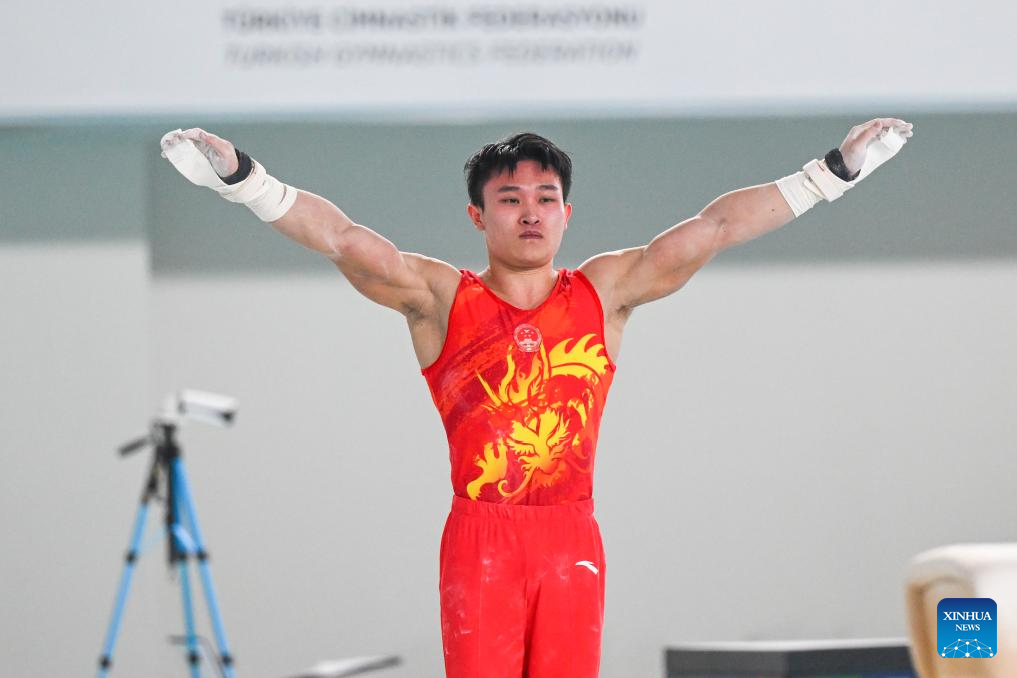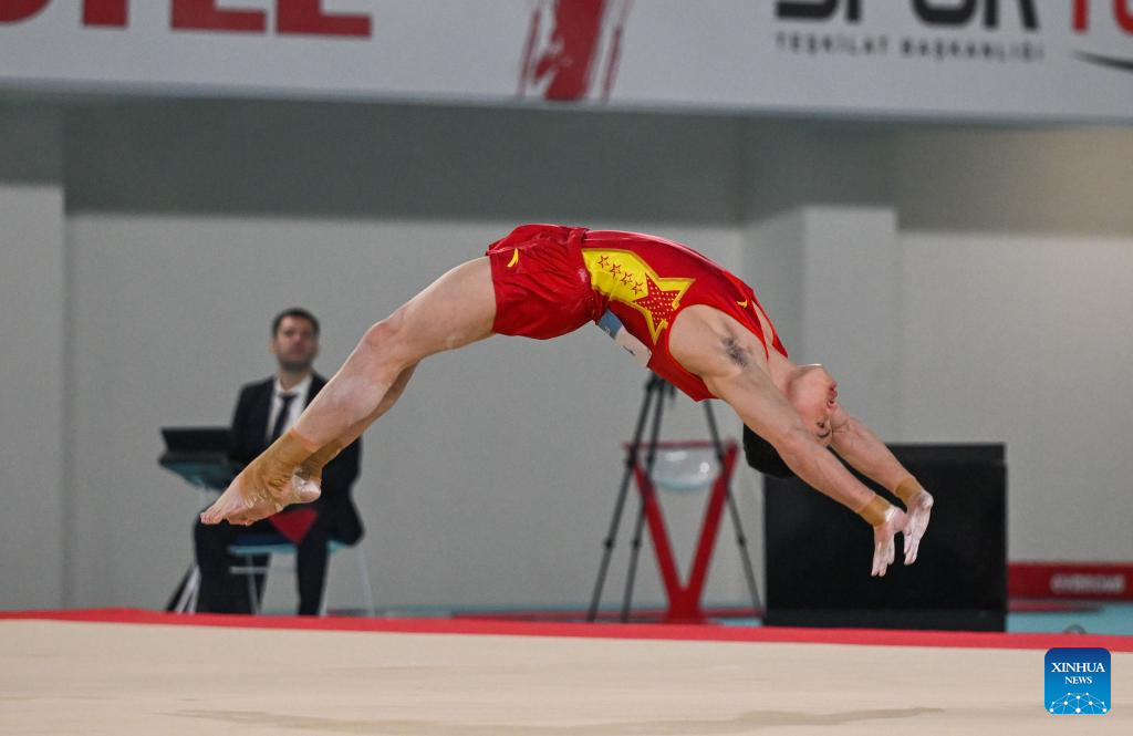 Yang Yanzhi of China competes during the men's floor exercise final at the FIG Artistic Gymnastics Apparatus World Cup 2025 in Antalya, Türkiye, March 22, 2025. (Xinhua/Liu Lei)
