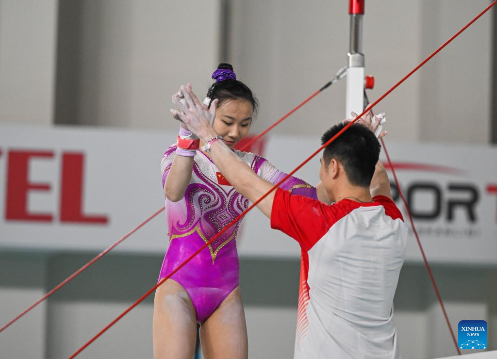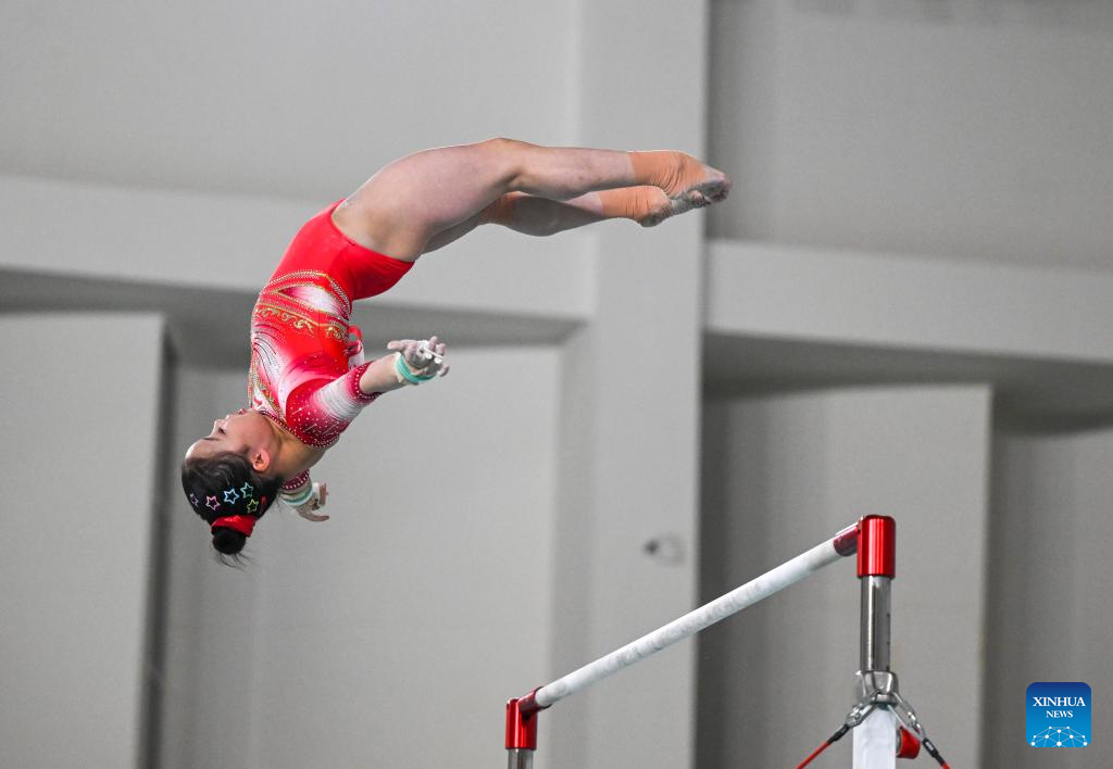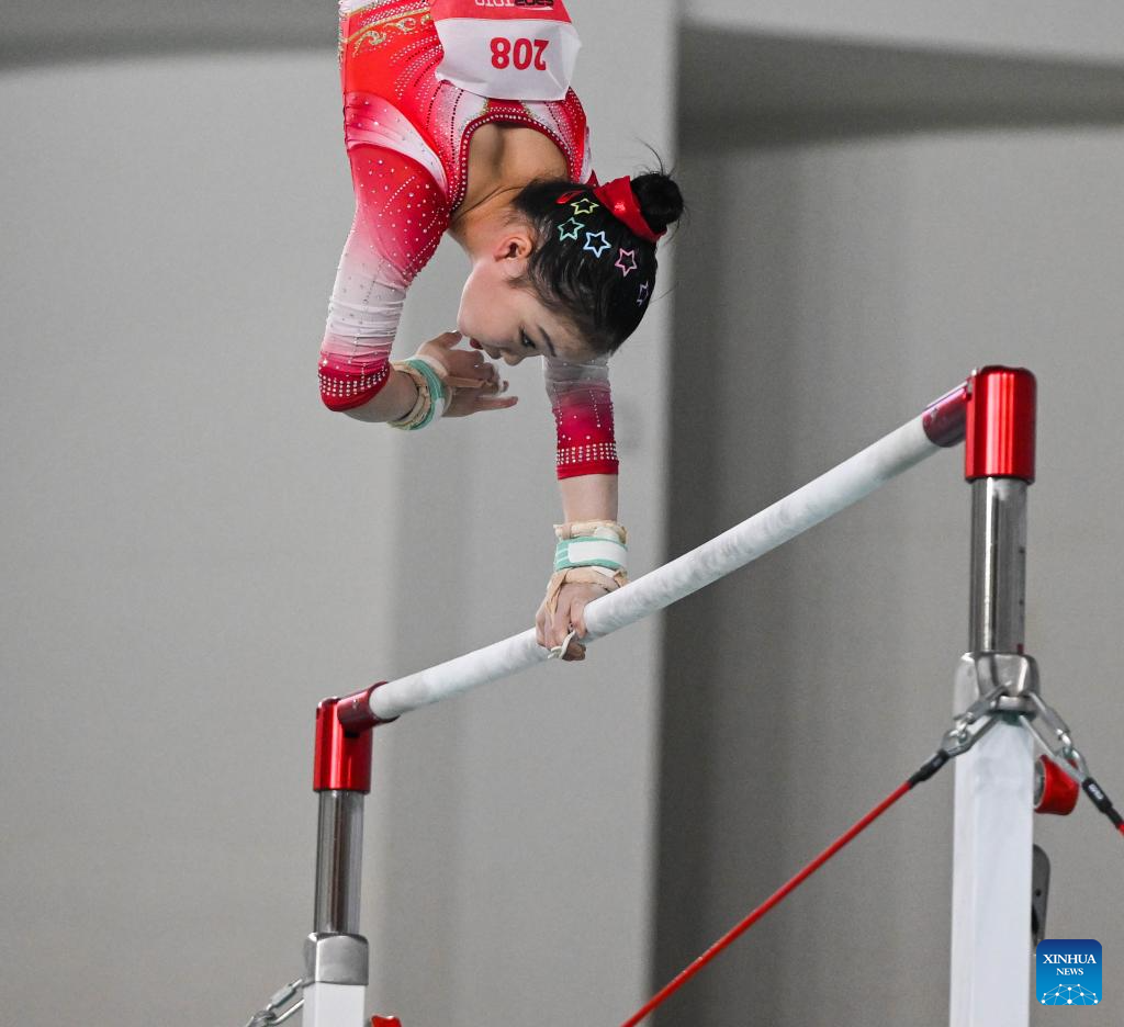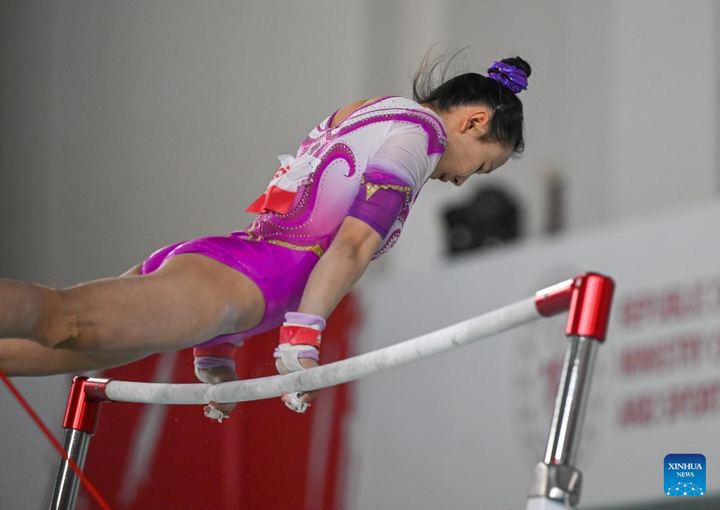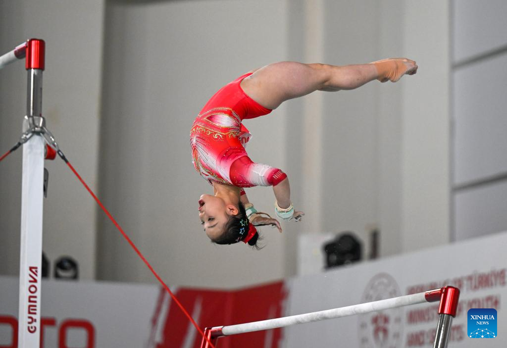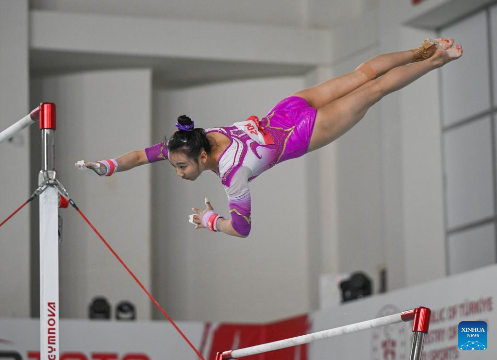 Yang Fanyuwei of China competes during the women's uneven bars final at the FIG Artistic Gymnastics Apparatus World Cup 2025 in Antalya, Türkiye, March 22, 2025. (Xinhua/Liu Lei)