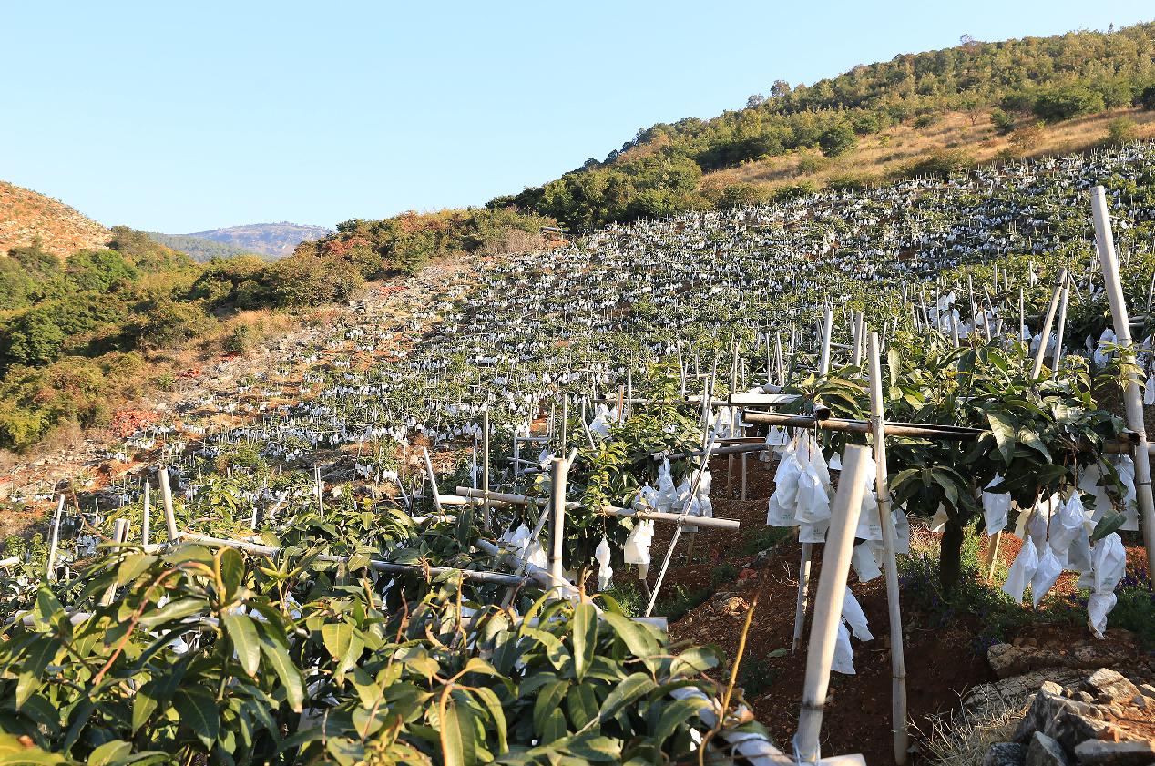 Photo shows a mango orchard on a hill in Huaping, Lijiang, southwest China's Yunnan province. (Photo from the official account of the publicity department of Yunnan province on WeChat)