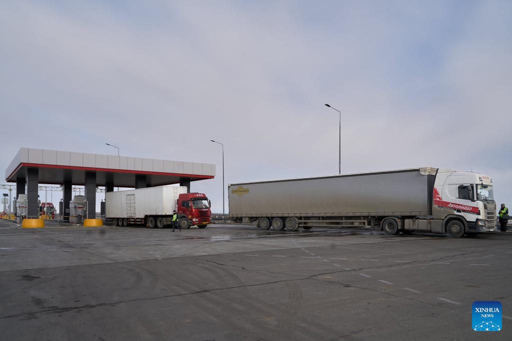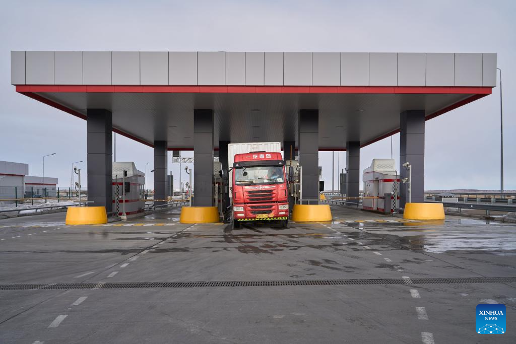 A Chinese truck passes through the border toll station between China and Russia on the bridge along Heihe-Blagoveshchensk highway on March 21, 2025. The Russian city of Blagoveshchensk faces China's Heihe City across the Heilongjiang River, known in Russia as the Amur River. Recent years the two cities have witnessed active economic and trade exchanges.