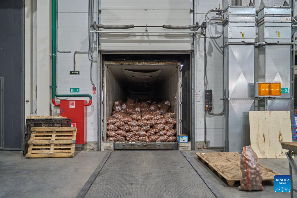 Potatoes from China wait for sampling at the Kanikurgan Customs and Logistics Terminal in Blagoveshchensk, Russia, March 21, 2025. The Russian city of Blagoveshchensk faces China's Heihe City across the Heilongjiang River, known in Russia as the Amur River. Recent years the two cities have witnessed active economic and trade exchanges.