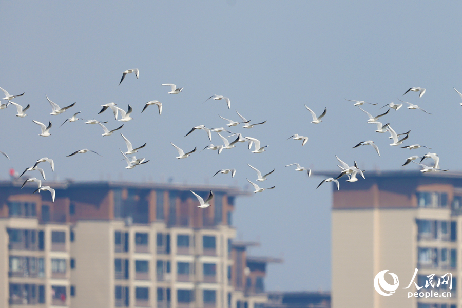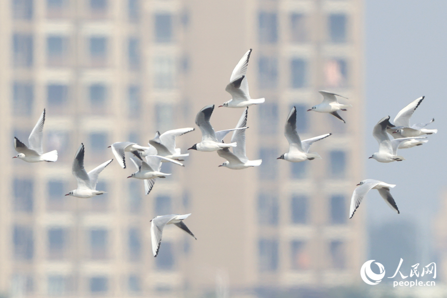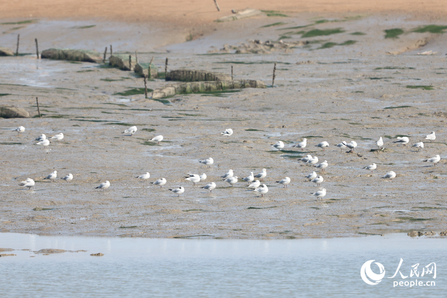 Photo shows Saunders's gulls, a bird species under first-class state protection in China in Xiamen, southeast China's Fujian Province. (People's Daily Online/Chen Bo)