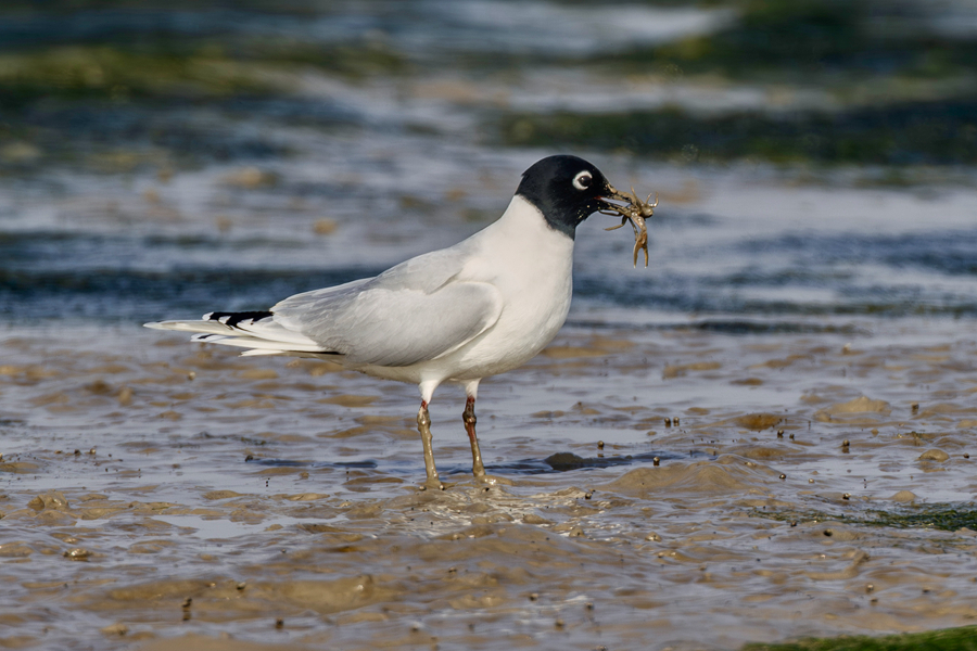 A Saunders's gull catches crabs in Xiamen, southeast China's Fujian Province. (Photo/Ke Yukun)