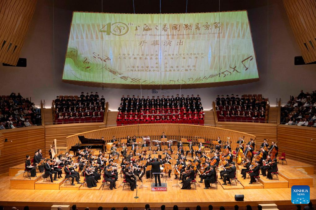 The opening performance of the 40th Shanghai Spring International Music Festival is staged in Shanghai, east China, March 23, 2025. The opening performance "Maintaining Peace for the Future", a theme concert commemorating the 80th anniversary of the victory of the Chinese People's War of Resistance Against Japanese Aggression and the World Anti-Fascist War, was held at Shanghai Symphony Hall in Shanghai on Sunday. (Xinhua/Wang Xiang)