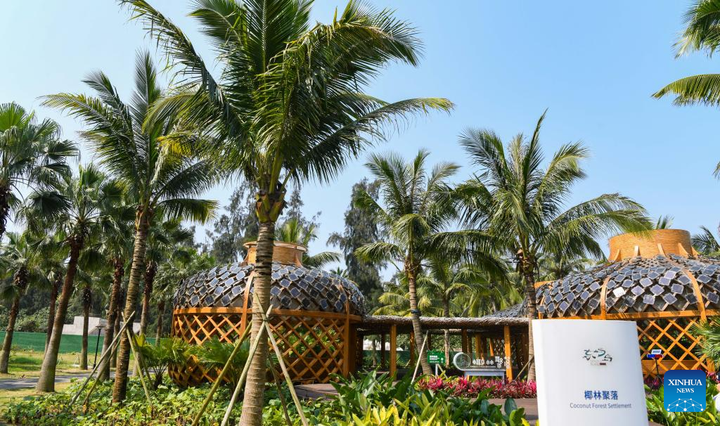 This photo taken on March 25, 2025 shows an area of coconut forest in the Boao zero-carbon demonstration zone in Boao, south China's Hainan Province. China's Boao has announced the establishment of its first zero-carbon zone, a significant step forward in the country's pursuit of low-carbon development, according to authorities in Hainan. (Xinhua/Yang Guanyu)