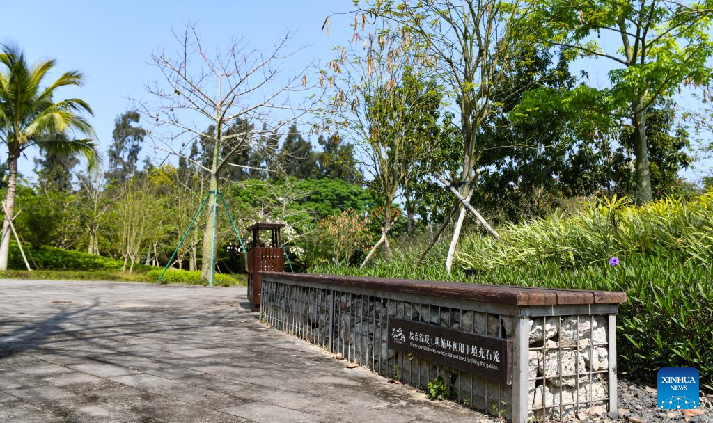 This photo taken on March 25, 2025 shows the view of a garden in the Boao zero-carbon demonstration zone in Boao, south China's Hainan Province. China's Boao has announced the establishment of its first zero-carbon zone, a significant step forward in the country's pursuit of low-carbon development, according to authorities in Hainan. (Xinhua/Yang Guanyu)