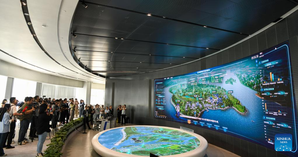 This photo taken on March 25, 2025 shows an operation management center of the Boao zero-carbon demonstration zone in Boao, south China's Hainan Province. China's Boao has announced the establishment of its first zero-carbon zone, a significant step forward in the country's pursuit of low-carbon development, according to authorities in Hainan. (Xinhua/Yang Guanyu)