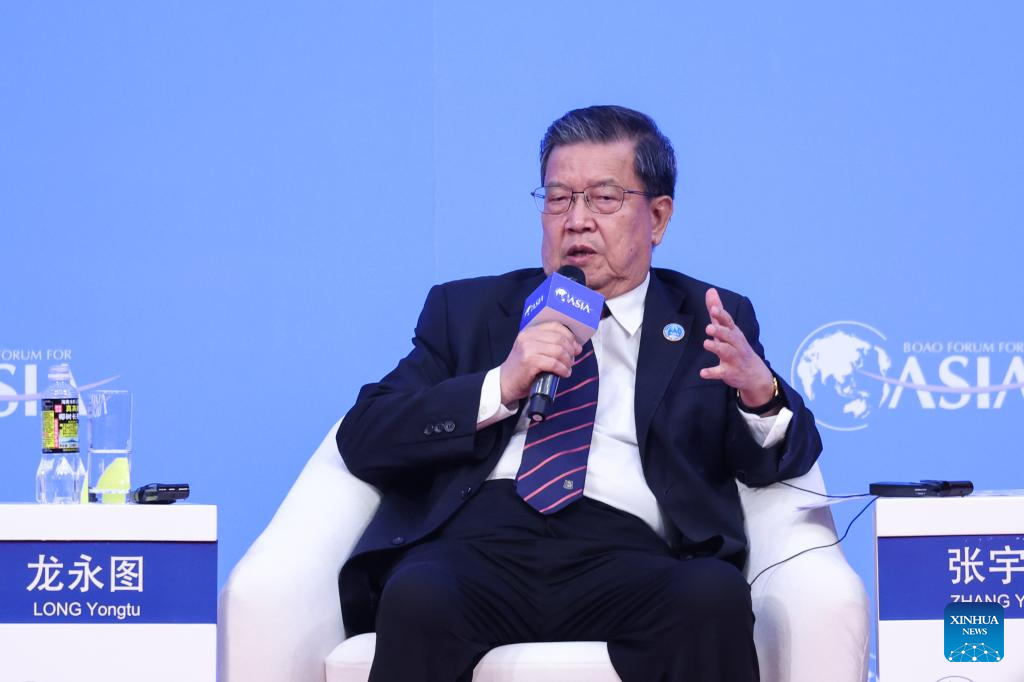 Long Yongtu, former vice minister of Ministry of Foreign Trade and Economic Cooperation, speaks at a panel discussion themed on "Global Free Trade Port Development" during the Boao Forum for Asia (BFA) Annual Conference 2025 in Boao, south China's Hainan Province, March 25, 2025. (Xinhua/Zhang Liyun)
