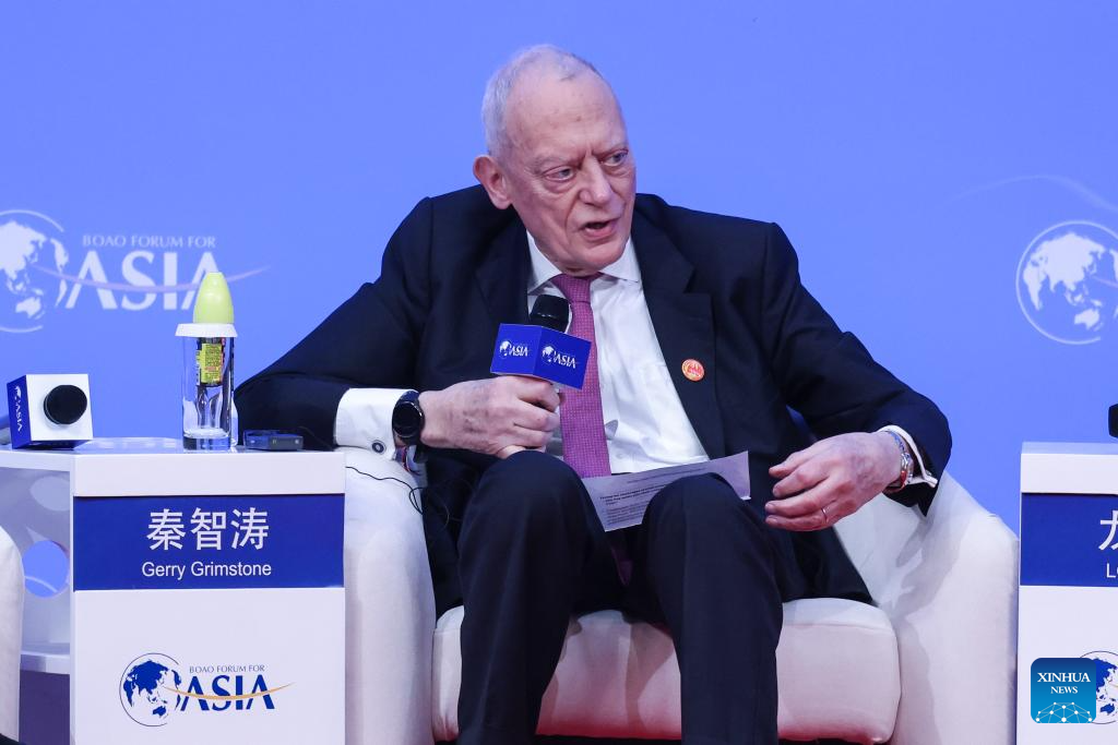 Gerry Grimstone, vice chairman of BlueFive Capital and former UK minister for investment, speaks at a panel discussion themed on "Global Free Trade Port Development" during the Boao Forum for Asia (BFA) Annual Conference 2025 in Boao, south China's Hainan Province, March 25, 2025. (Xinhua/Zhang Liyun)