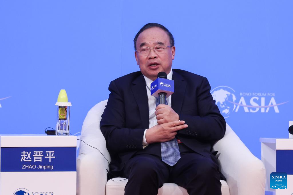 Zhao Jinping, member of the Expert Advisory Committee for the Construction of the Hainan Free Trade Port, speaks at a panel discussion themed on "Global Free Trade Port Development" during the Boao Forum for Asia (BFA) Annual Conference 2025 in Boao, south China's Hainan Province, March 25, 2025. (Xinhua/Zhang Liyun)