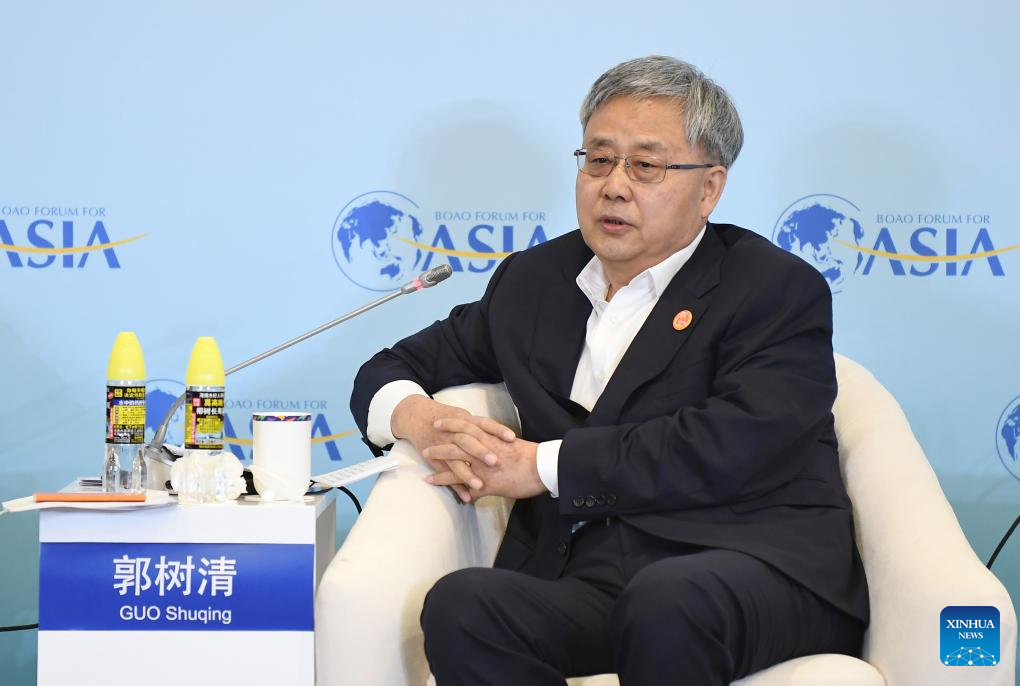 Guo Shuqing, vice chairman of the Finance and Economic Affairs Committee of the 14th National People's Congress, former Party secretary of the People's Bank of China and former chairman of the China Banking and Insurance Regulatory Commission, speaks at a panel discussion themed on "Pension Reform for Population Aging" during the Boao Forum for Asia (BFA) Annual Conference 2025 in Boao, south China's Hainan Province, March 25, 2025. (Xinhua/Xie Ziyi)