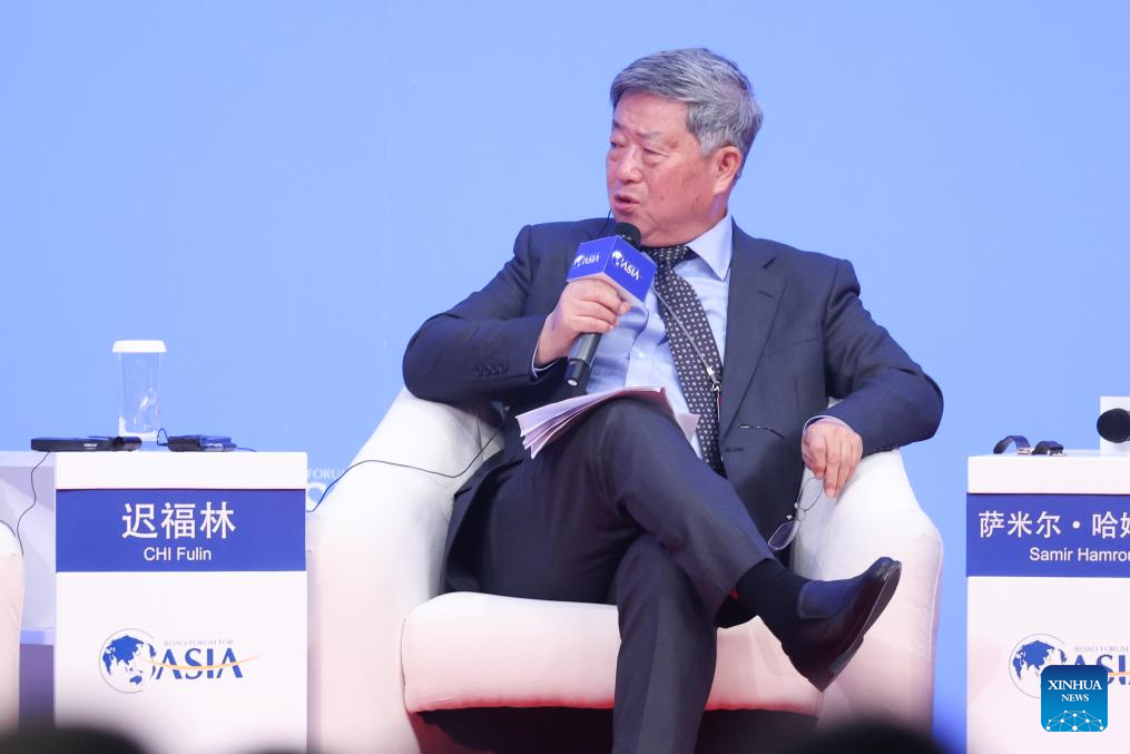 Chi Fulin, president of the China Institute for Reform and Development (CIRD), speaks at a panel discussion themed on "Global Free Trade Port Development" during the Boao Forum for Asia (BFA) Annual Conference 2025 in Boao, south China's Hainan Province, March 25, 2025. (Xinhua/Zhang Liyun)