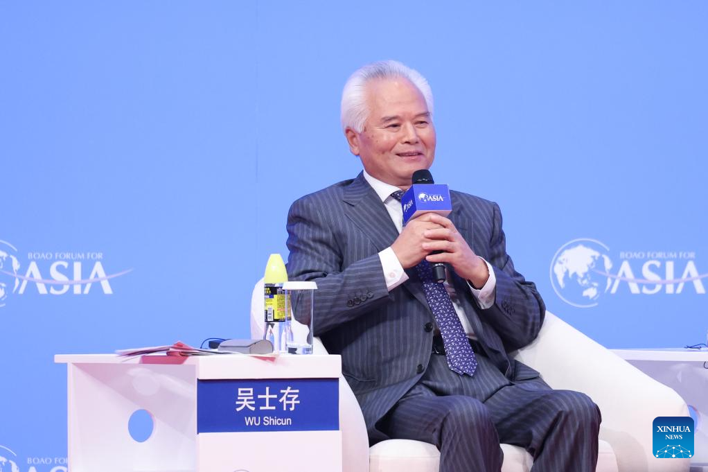Wu Shicun, chairman of Huayang Center for Maritime Cooperation and Ocean Governance, speaks at a panel discussion themed on "Global Free Trade Port Development" during the Boao Forum for Asia (BFA) Annual Conference 2025 in Boao, south China's Hainan Province, March 25, 2025. (Xinhua/Zhang Liyun)