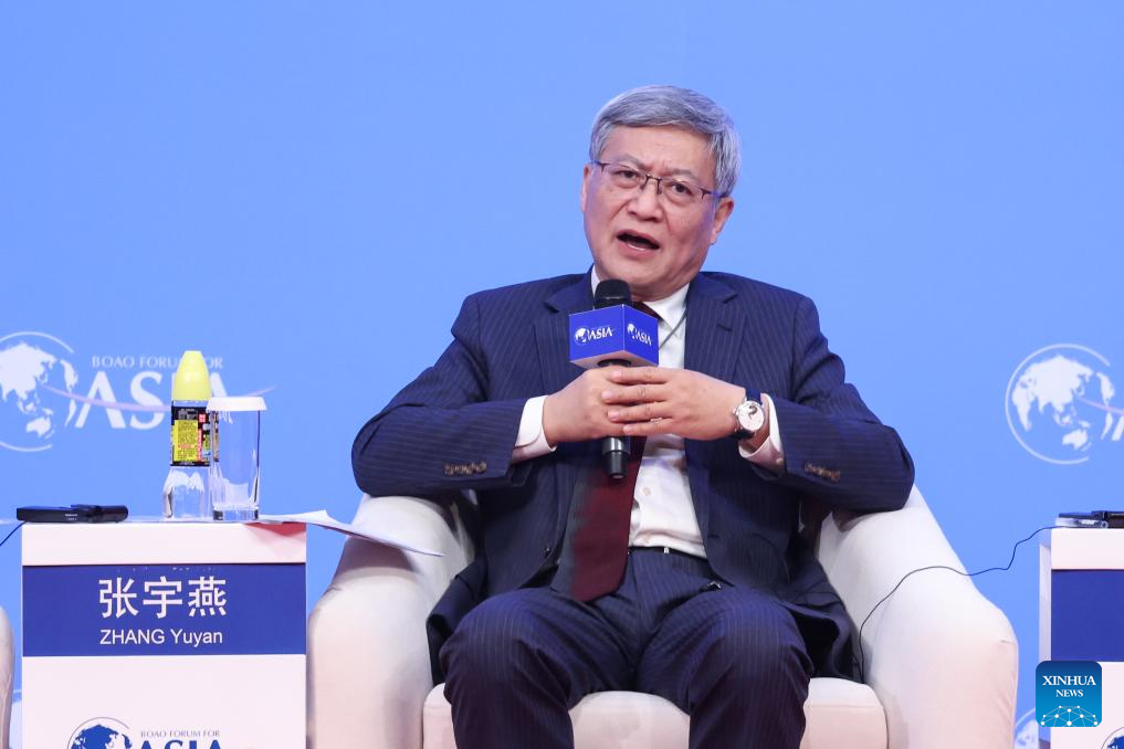 Zhang Yuyan, member of Chinese Academy of Social Sciences (CASS) and dean and professor of School of International Politics and Economics of University of CASS, speaks at a panel discussion themed on "Global Free Trade Port Development" during the Boao Forum for Asia (BFA) Annual Conference 2025 in Boao, south China's Hainan Province, March 25, 2025. (Xinhua/Zhang Liyun)