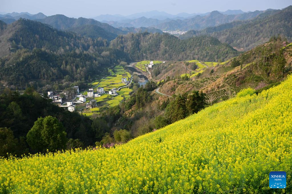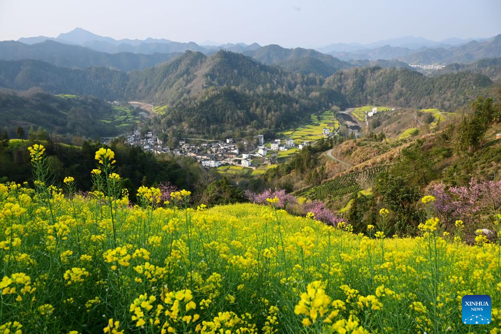 This photo taken on March 25, 2025 shows the spring scenery at Shitan Village in Shexian County, Huangshan City of east China's Anhui Province. (Xinhua/Zhou Mu)