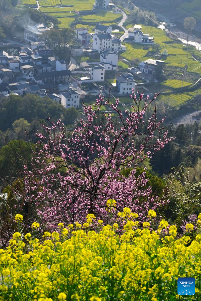 Visitors enjoy flowers at Shitan Village in Shexian County, Huangshan City of east China's Anhui Province, March 26, 2025. (Xinhua/Zhou Mu)