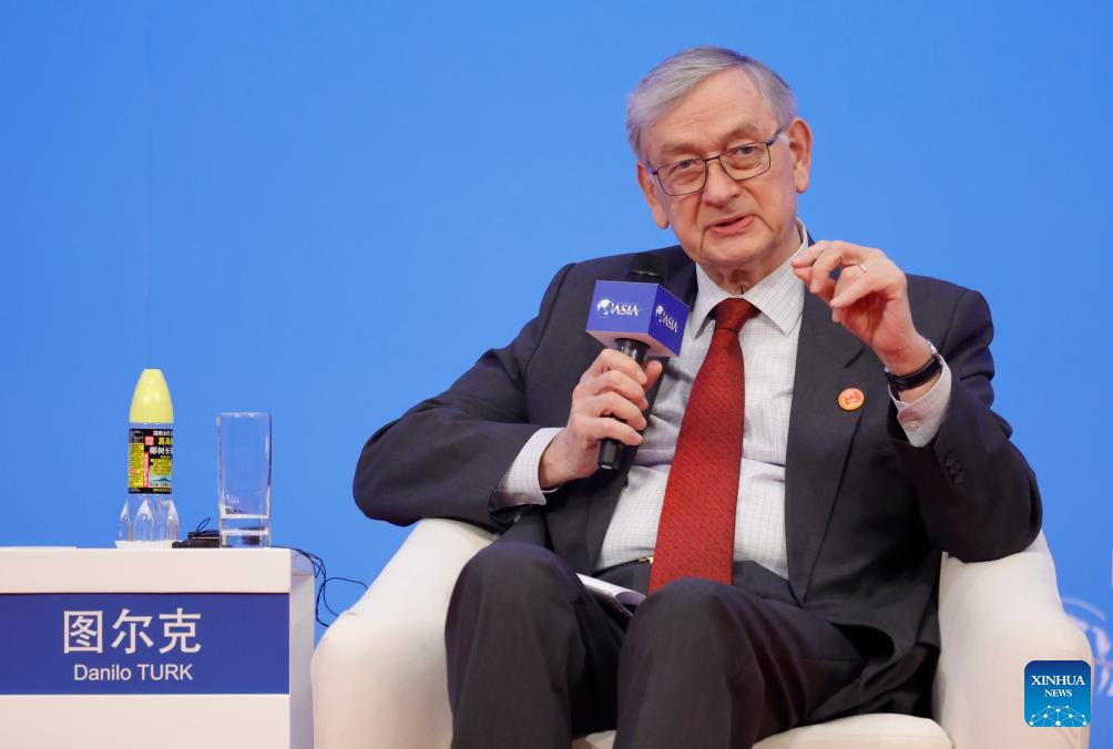 Danilo Turk, former Slovenian president and president of the World Leadership Alliance Club de Madrid, speaks at a high-level dialogue themed on "Global Governance after the UN Summit of the Future" during the Boao Forum for Asia (BFA) Annual Conference 2025 in Boao, south China's Hainan Province, March 26, 2025. (Xinhua/Du Xiaoyi)
